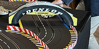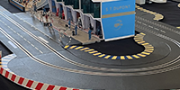 * Le circuit analogique de marque Carrera en 2 voies d'une surface de 2,70 x 1,90 m pour un tracé de 11,08 mètres